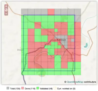 Bing has greatly extended his imagery coverage over the last two years. But for the Ebola outbreak, their high-resolution imagery was not available for the three main towns we need to cover and the adjacent regions. The group CartoNG has purchased imagery on behalf of MSF-Switzerland for the three largest towns in the region. Task Manager jobs have been created for these towns, and they were mapped in 20 hours by our contributors, coordinating through the Task Manager.