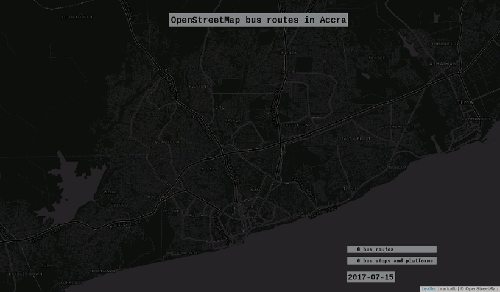 Accra Mobile 3 is a project launched in July 2017 to map all the Tro tro lines of Accra, Ghana for the Department of Transport (DoT) of Accra Metropolitan Assembly (AMA) into OpenStreetMap.
