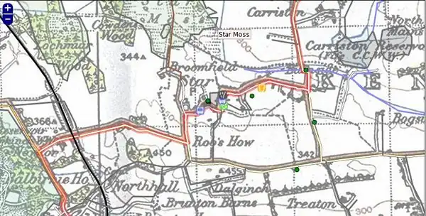 The following image of a small housing estate in Markinch contains many GPS tracks, and several inaccuracies.