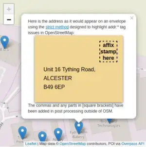 - OSM UK Address envelopes map (uses the strict method to show address envelopes).
