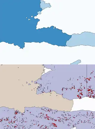 - The large polygons extending across multiple tiles (that's the ice shelves and a few large islands) can be left split during the import (as long as each part stays formally valid on its own of course) and then be merged once all tiles containing part of the polygon are uploaded. Make sure to document this in the table below.
