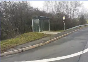 Besonders bei einfachen, ländlichen Bushaltestellen ist manchmal nicht klar abgegrenzt wo die Plattformfläche liegt, bzw. es gibt keinen baulich getrennten Bereich zur Straße.