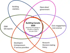As a community-led initiative, Building Canada 2020 can foster collaboration between a multitude of stakeholders (civic groups, private sector, academia, public sector...) to achieve a specific common goal benefiting each‎ stakeholder, as well as society as a whole. This approach is inspired by principles of civic science, more specifically, civic data. A community-led approach enables stakeholders sharing a common vision ‎to share ownership and accountability for its realization as well as the creation of its output: open, accurate and complete data on all buildings in Canada, accessible through OSM.