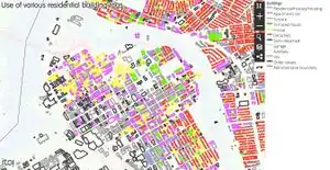 The tags of most interest are the type of building so building=detached, semi, commercial, terrace, hotel, school and others mentioned in Map Features