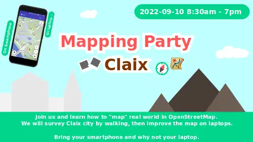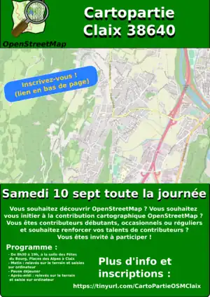 Pour recenser les modifications/ajouts sur la commune de Claix, utiliser s'il-vous-plaît ce hashtag #CARTOCLAIX2022 lors des soumissions à partir d'aujourd'hui et jusqu'à la fin de la cartopartie (fin sept 2022).