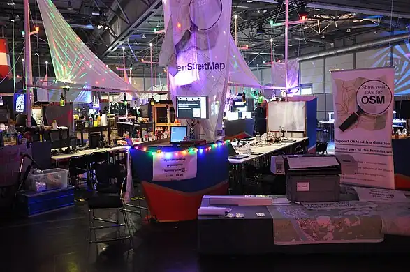 - I agree. Our eyecatcher was tooooo small. More people like the year before visited our assembly. But this was still far away from the success two years ago. A large rectangular sail (instead of triangular one on the photo) attached between the two big masts of the ship could be a projection surface for the beamer that perfectly catches the angle of passing people's eyes. Watching the passing people nobody payed attention to thinks like "FOSSGIS" or "SOTM" on the screen. Of course we as insiders know what it is. But other people ...? The only real eyecatcher was "Show me the way", which was hacked and optimized by Mstock and thus ran smoothly for 24 hours ... until a person called "Simon Poole" was catched editing OSM. :-) -- Tirkon (talk) 07:46, 10 January 2020 (UTC)