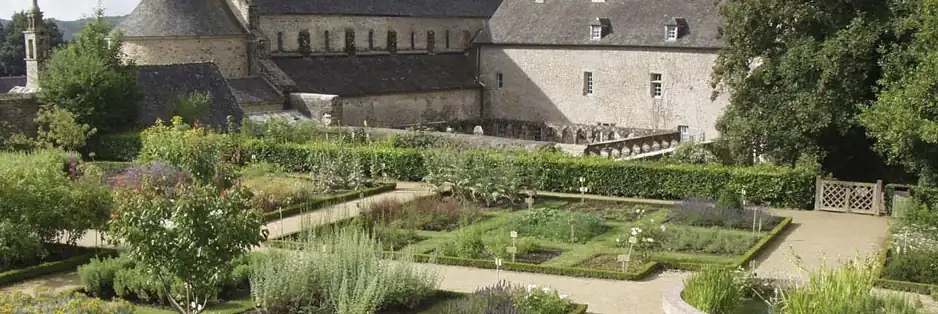 Aux plantes habituelles, médicinales, condimentaires et aromatiques s'ajoutent, dans un espace spécifique, des plantes exotiques, magiques, en voie de disparition. l'extension du jardin se prolonge dans le cloître qui reçoit une ornementation de buis et fougères. Les ruines des communs mises au jour lors des fouilles archéologiques sont animées par des espèces végétales.[7]
