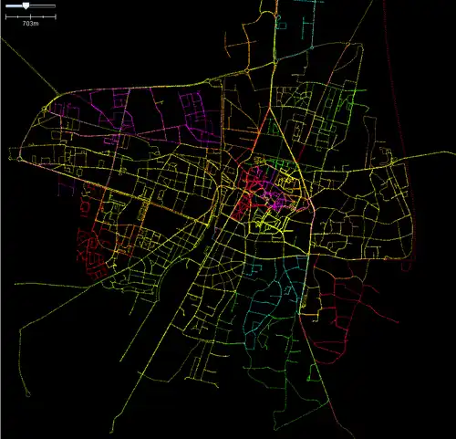100% des tracés de rues, noms de rues, places, sens de circulation (intra-muros)