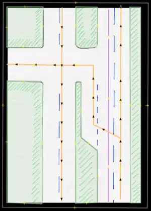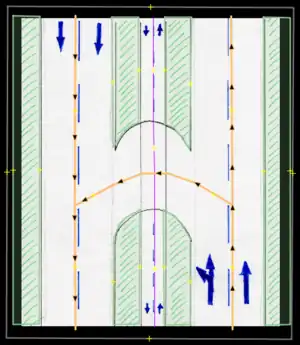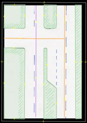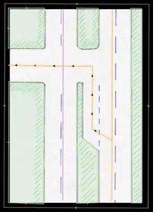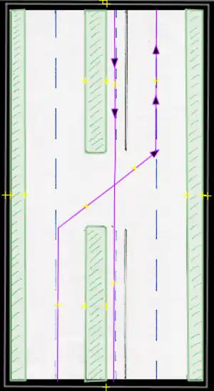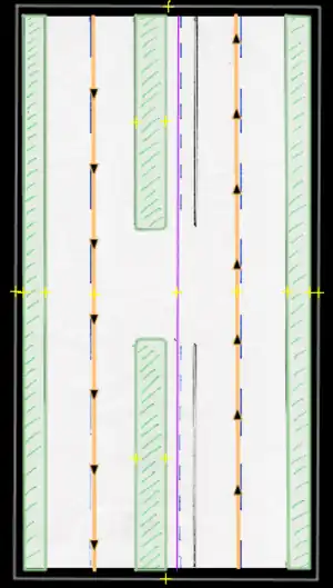 • Cycle path/Ciclorruta: A permanent path used for bicycles or the like. These usually have some sort of obstacle or barrier which in certain cases may be shared ways with pedestrians. If any physical barrier is present, these may be drawn in as entirely separate ways, OR if the path faithfully follows the same road used by other vehicles, it may be also entered by using the proper road tagging: