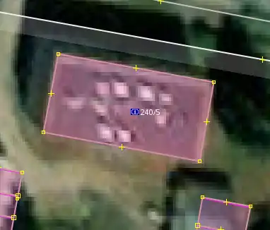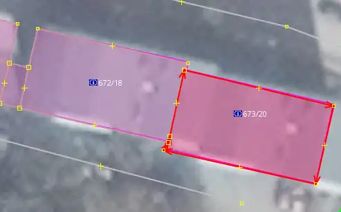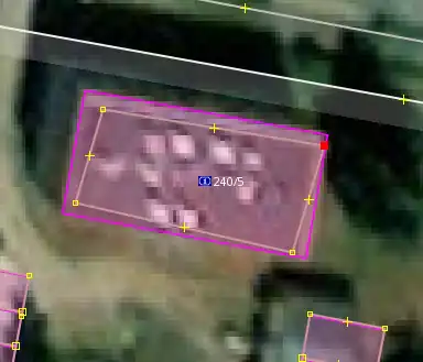 Jestliže nad vrstvou Český RÚIAN budovy vidíme již zakreslenou budovu která je hodně podobné velikosti ale jiného/stejného tvaru, zkontrolujeme nejdříve zda již zakreslený tvar není stejný jako ten na ortofotu. Pokud ne a tvar na ortofotu se podobá tomu z vrstvy Český RÚIAN budovy, klikneme s puštěným tracerem do již zakreslené budovy a ta se automaticky přetrasuje.