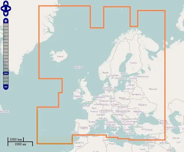 - Da die Europa-Karte nicht mehr in die meisten Geräte passt, werde ich die Karte in Zukunft beschneiden im Flächenumfang. Bitte Rückmeldung um Gebiete/Kacheln die in Zukunft entfernt werden sollen.--flacus 19:14, 14 June 2011 (BST)