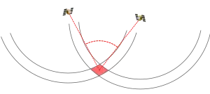 Je nach dem Winkel zwischen zwei Satelliten schneiden sich die Kugelflächen mehr oder weniger "schleifend". Je nach Genauigkeit der Zeit- bzw. Distanzmessung ergibt sich ein mehr oder weniger breiter "Ring" beim Schnitt der Kugelflächen, und damit eine entsprechend größere oder kleinere Fläche, in der sich der Standort befindet: