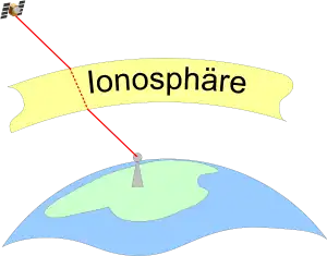 In der Ionosphäre und in der Troposphäre werden die Radiowellen gebrochen. Diese Brechung ist nicht konstant, sondern hängt von der aktuellen "Wetter"-Lage in der Ionosphäre ab. Gleichzeitig werden die Signale gedämpft. Durch die variable Brechung der Ionosphäre entstehen längere Laufzeiten, die zu Berechnungsfehlern führen. Die Dämpfung veringert die Strahlenleistung am Empänger, so dass u.U. dieses Satellitensignal zu schwach für eine Messung ist.