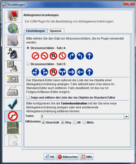 Öffne die JOSM-Einstellungen und aktiviere das Plugin turnrestrictions. |