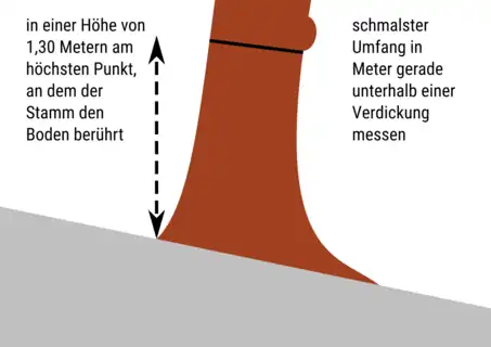 | Umfang eines Baumstamms auf 1,30 Meter über dem Boden. |