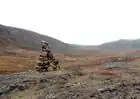 Wegmarkierung, die durch Steinmännchen erfolgt. Auch wenn rote Farbe auf dem Steinmännchen ist, würde ich es als |