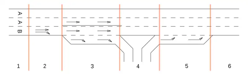 Diese Fahrspur endet und es sollte auf die unmittelbar rechts befindliche gewechselt werden. (ausschließlich)