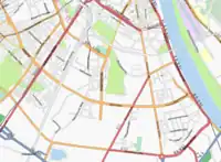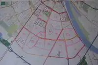 In der Nähe der Schule waren noch einige weiße Gegenden auf der OSM-Landkarte. Wir hatten die Gegend im Vorfeld entlang größerer Straßen in einzelne Bereiche aufgeteilt, die jeweils von einer Gruppe von 2-4 Schülern erfaßt werden sollten. An der Wand hatten wir eine große OSM-Karte aufgehängt, in der die Bereiche mit einem Markerstift eingezeichnet waren. Gebiete, die etwas weiter weg waren, konnten von Schülern per Fahrrad oder ÖPNV erreicht werden, nähere Gebiete konnten zu Fuß erreicht werden. Die Schüler fanden sich selbst zu Gruppen zusammen und äußerten auch teilweise Wünsche, welche Gebiete sie interessierten.