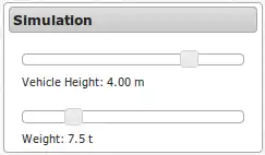 Im Simulationsmodus lassen sich die beiden Werte für Höhe und Gewicht eines Fahrzeugs wählen. Aktuell wird damit nur die Farbdarstellung auf der Karte beeiflußt.