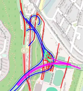 Weg wird rot markiert, wenn dieses Tag gesetzt wurde. Bitte auf der Diskussionsseite passendes Farbschema vorschlagen. | ||||||||||||||||||||||||||||||||||||||||||