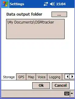 Hier kann man Angeben wo die erzeugten Dateien gespeichert werden. Im ausgewählten Verzeichnis legt OSMtracker die .gpx, Audio-Aufzeichnungen, Bilder und nmea-log Dateien ab.