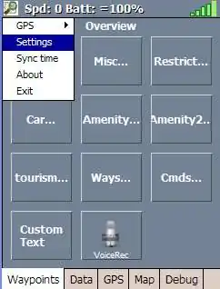 Für die kundenspezifische Button-Definition, editieren Sie die Datei buttons.xml im Anwendungsodner. Das Titel-Attribut ist der Button-Text in der Anwendung, der waypoint Text (im GPX) ist die letzte Zeichenkette. Wichtig: Wenn Sie den buttons.xml im Anwendungsordner beim Editieren überschreiben, könnte sie bei einer Aktualisierung überschrieben werden. Speichern Sie sie besser ins Datenverzeichnis (dieser Ordner hat Vorrang). Bemachten Sie: für fortgeschrittene Button-Definition bitte this page lesen.