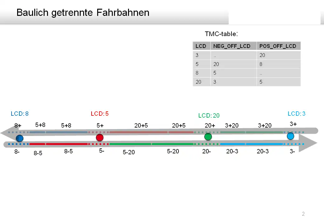 Die infoware GmbH (www.infoware.de) hat mit der Unterstützung der Geofabrik GmbH (www.geofabrik.de) ein verbessertes Tagging Schema für TMC Daten erarbeitet, das wir im Folgenden zur allgemeinen Verwendung in OpenStreetMap vorschlagen.