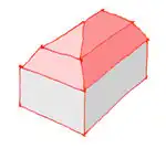 Wenn einige Teile des realen Gebäudes unterschiedliche Attribute (z.B. Höhe) haben, können sie als zusätzliche Flächen modelliert werden. Diese werden mit building:part=yes markiert.