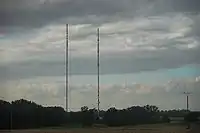 | Eine stationäre Einrichtung zur Übertragung von Radio, TV und/oder Mobilfunksignalen, ggf. mit Gebäuden für Personal und Betrieb der Sendeanlagen. |