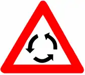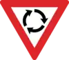 Kreisverkehre sind in der Regel durch Schilder gekennzeichnet, z.B. eines der folgenden: