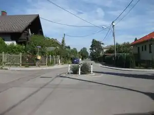Ebenfalls ein klassischer Minikreisverkehr mit einer leicht erhöhten, aber trotzdem voll befahrbaren Mittelinsel.