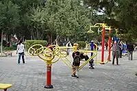 | Eine Einrichtung im Außenbereich an der typische Fitnessübungen durchgeführt werden können |
