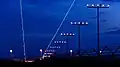 Eine Kette von Scheinwerfern (ALS) befindet sich in Verlängerung der Runway.