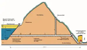 Obwohl diese Behälter große Schächte oder schornsteinartige Bauwerke sein können, ist pipeline= auf dem Knoten zu setzen, der das Wasserschloss mit der Druckleitung oder dem gefluteten Tunnel verbindet.