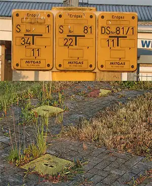 pipeline=(Schieber oder Schieberkasten) +substance=water/oil/gas(Wasser, Öl, Erd- oder Ferngas) (optional) +operator=*(optional) +ref=*(optional) +diameter=*(optional) +position=*Position laut Hinweisschild von links nach rechts gelesen (optional)