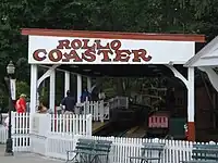 | Das Gebäude oder der Ort, an dem Achterbahnzüge zum Fahrgastwechsel halten. |