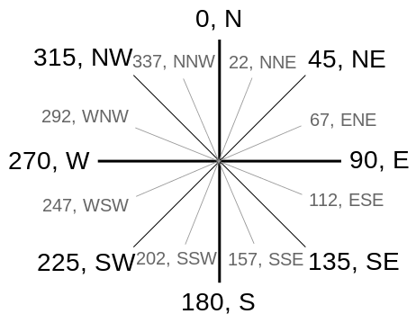 Das Blickfeld der Aussicht sollte mit dem direction=*-Tag beschrieben werden, entweder als einzelne Angabe der Hauptrichtung oder indem die Himmelsrichtungen der linken und rechten Sichtfeldgrenze (in dieser Reihenfolge) angegeben werden. OpenTopoMap stellt Aussichtspunkte nur noch dar, wenn direction=* eingetragen wurde[1].