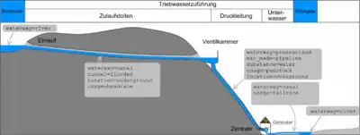 Triebwasserzuführung können abhängig von der Umgebung und der Wassermenge als offener Oberwasserkanal canal,