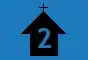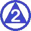 blauer Ring mit farbgleich eingelagertem, ausgefülltem Dreieck, darin enthalten in Hintergrundfarbe die Ziffer 2