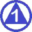 blauer Ring mit farbgleich eingelagertem, ausgefülltem Dreieck, darin enthalten in Hintergrundfarbe die Ziffer 1