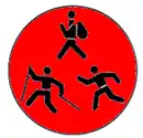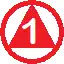 roter Ring mit farbgleich eingelagertem, ausgefülltem Dreieck, darin enthalten in Hintergrundfarbe die Ziffer 1