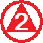 roter Ring mit farbgleich eingelagertem, ausgefülltem Dreieck, darin enthalten in Hintergrundfarbe die Ziffer 2
