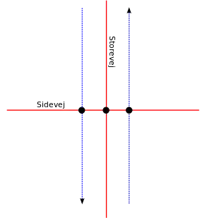 Kryds mellem dobbeltsporet vej og sidevej