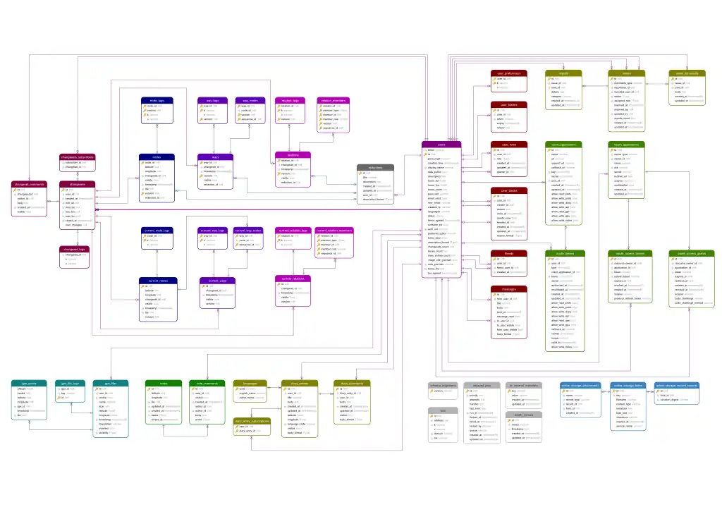 Database schema: https://github.com/openstreetmap/openstreetmap-website/blob/master/db/structure.sql, Rails port/Database schema.