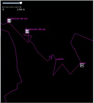 - Instalarse en el móvil la aplicación OSM Tracker disponible para Android en el Google Play. Esta aplicación está enfocada para hacer trabajo de campo con OSM, de forma que permite grabar una track e incluir en la misma anotaciones, grabaciones de audio o fotografía geolocalizadas. Más información aquí