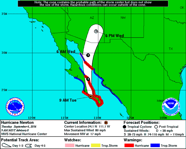 - 6 de Septiembre 2016 - La comunidad HOT es informada sobre las posibles afectaciones del Huracán Newton en Baja California Sur