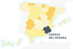 La importación en proceso se refiere a los datos hidrográficos disponibles en la administración de la Confederación Hidrográfica del Segura. La Cuenca del Río Segura se encuentra en el cuadrante sur-oriental de España.