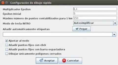 • Al arrastrar y hacer clic cerca de nodos existentes estos se pueden incluir automáticamente en la línea dibujada (quedan como puntos fijos y no se cambian por la simplificación). Puedes desactivar este comportamiento en los ajustes (tecla Q) .
