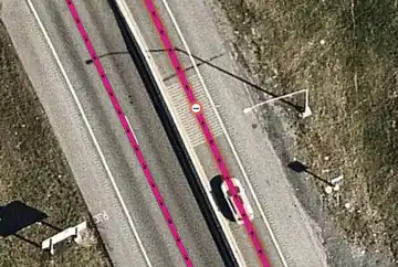 | traffic_calming | hump | Resalte. Elevación de segmento circular construido generalmente con el mismo material del pavimento. Puede tener diferente anchos, pero la pendiente es suave. Están señalizadas con pintura reflectiva de color blanco o amarillo para poder ser advertidas. | ![]() | ||