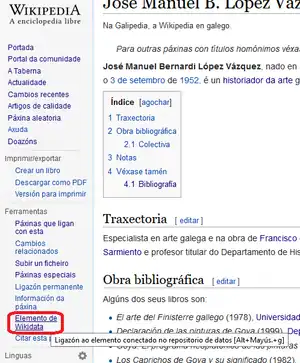 Busca en la página de inicio de Wikidata: www.wikidata.org o sigue el enlace desde la Wikipedia (véase la captura de pantalla).